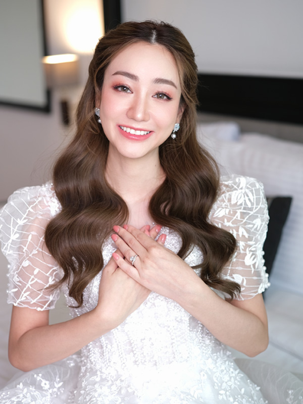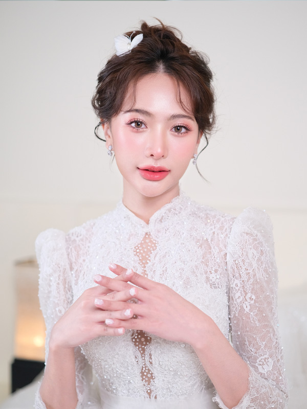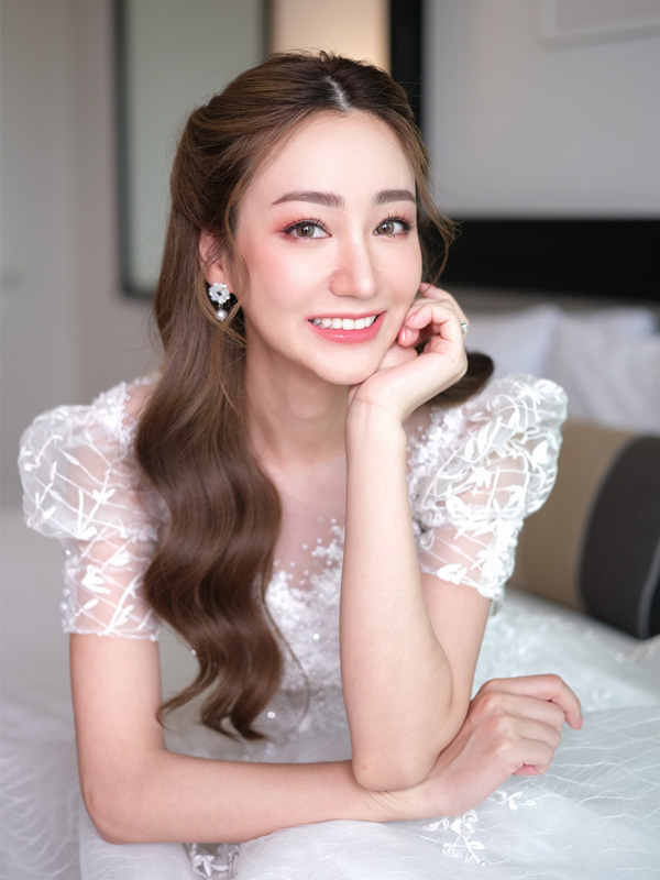 และในส่วนของทรงผม ก็จะให้ความสำคัญด้วยเช่นการ การเลือกสีผม ทรงผม เพื่อให้เข้ากับรูปหน้าและชุด และในวันงานจริง เราก็ดูหน้างานและปรับให้เข้ากับเจ้าสาวมากที่สุดเพื่อให้การแต่งหน้าเจ้าสาวในวันสำคัญสวยหวานสมบูรณ์แบบที่สุด
